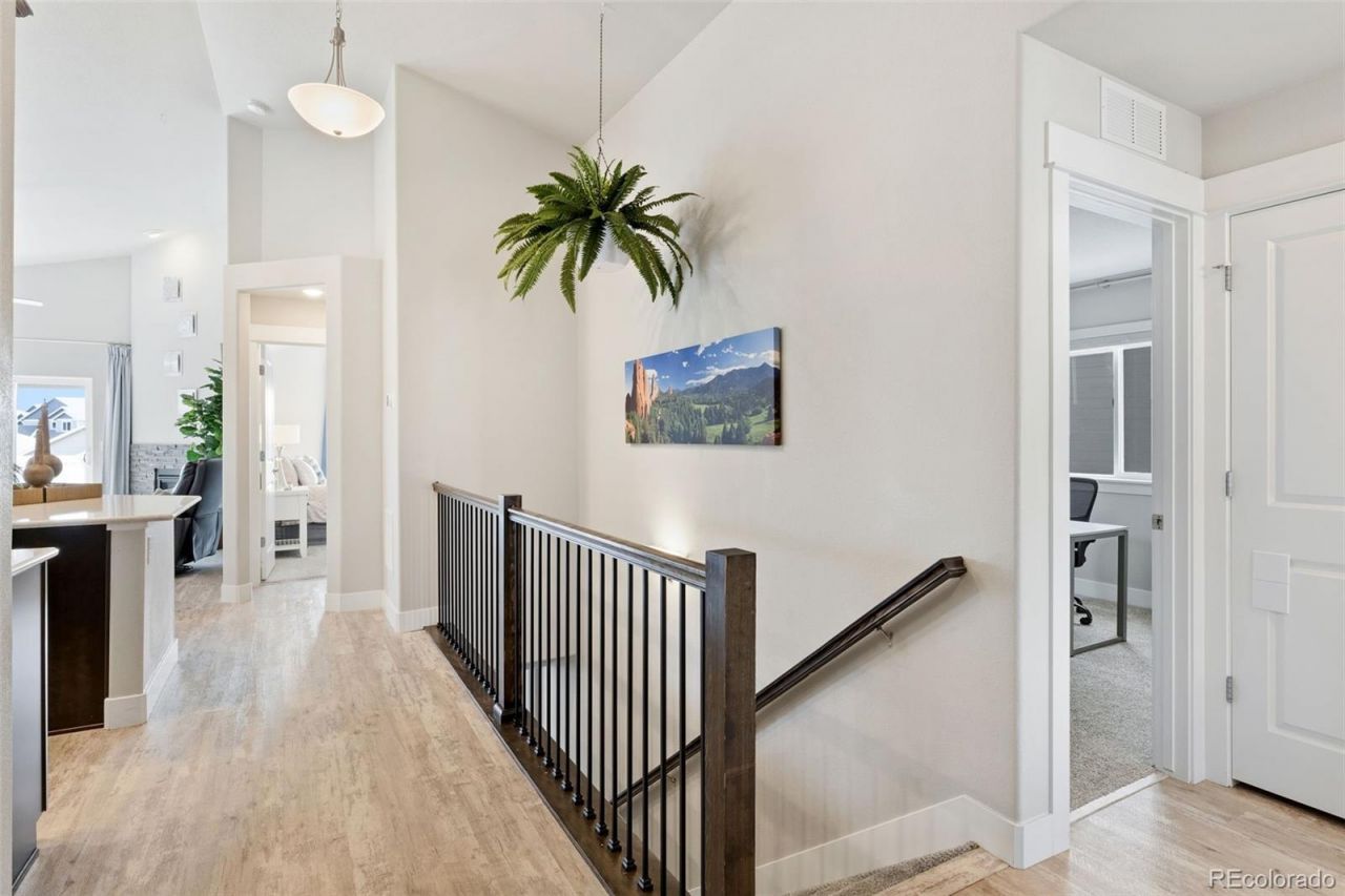 This stunning walkout ranch is on nearly a quarter-acre, fully manicured lot. Built in 2021, tucked away on a quiet cul-de-sacand combines modern design and flexible living options. Located within award-winning District 20 schools, the property alsoenjoys easy access to neighborhood trails, hiking, and outdoor recreation. The bright, open main level welcomes you withvaulted ceilings and an abundance of natural light. Luxury vinyl plank flooring flows through the kitchen, dining area, andgreat room, creating a cohesive and contemporary feel. The spacious great room is anchored by a cozy gas fireplace, makingit an inviting space for relaxing or entertaining. The gourmet kitchen is designed with both style and function in mind,featuring upgraded quartz countertops, a large center island, and 42-inch upper cabinets. The primary suite is a privateretreat, offering generous space and a luxurious five-piece bathroom with quartz countertops, dual vanities, a soaking tub,and a separate shower. Additional main-level bedrooms are well-sized and versatile, perfect for guests, a home office, orhobbies. The fully finished walkout basement provides exceptional flexibility and is ideal for multi-generational living. Anewly added kitchenette and wet bar area, combined with a second washer and dryer location in the utility room, create aspace that is well-suited for in-laws, long-term guests, or extended family. Outdoor living is a highlight of this property, witha large composite deck offering mountain views and a stamped concrete patio below, ideal for barbecues and gatherings.Additional features include central air conditioning, a tankless water heater for efficiency, and a fully insulated garage withside-mounted garage door motors. With its walkout design, multi-generational living options, modern finishes, and primelocation, this exceptional Bradley Ranch home offers the perfect balance of comfort, flexibility, and lifestyle.