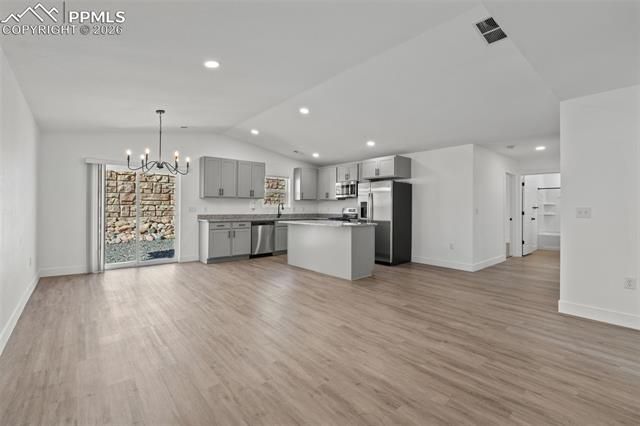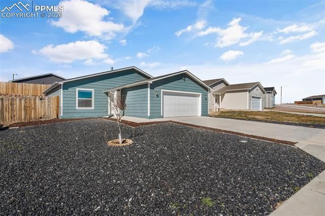Built in 2022, this move-in ready single-level ranch-style home offers modern comfort and convenience in the growing community. The residence features 3 bedrooms, 2 full bathrooms, vaulted ceilings, and an open & spacious layout. The master bedroom has a walk in closet and it's own bathroom. An oversized two-car garage provides ample parking space and storage.The home comes fully equipped with all major appliances, washer and dryer, central AC, forced-air heating, and window blinds already installed, making it ready for a new owner from day one. Enjoy low-maintenance zero-scaped front and back yards, with a sprinkler system already in place if you’d like to add grass, flowers, or shrubs later.The Legends at River Run neighborhood is a developing community with future plans for a pool, clubhouse, park, and dog park. With only two roads in and out, the neighborhood offers a quiet, safe, and small-community feel. Located only five minutes from I-25 and approximately 30 minutes from Fort Carson. The area also offers close proximity to the Arkansas River and Pueblo’s Downtown Riverwalk, providing easy access to outdoor recreation and local amenities.