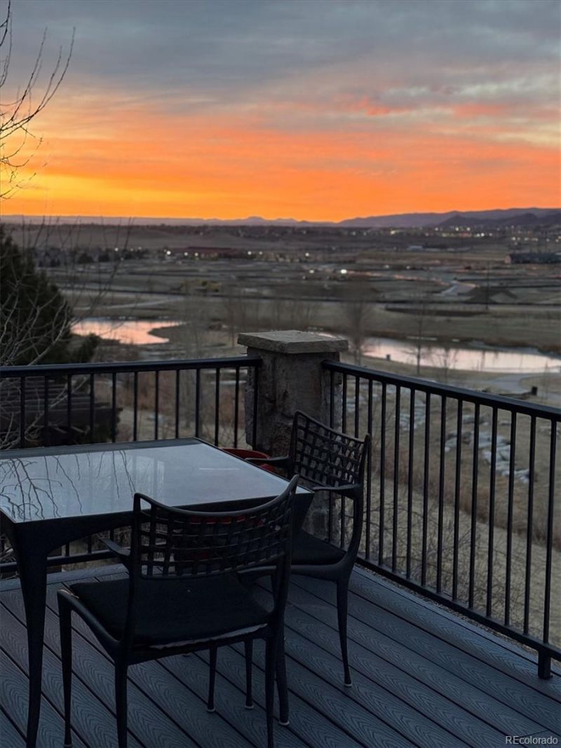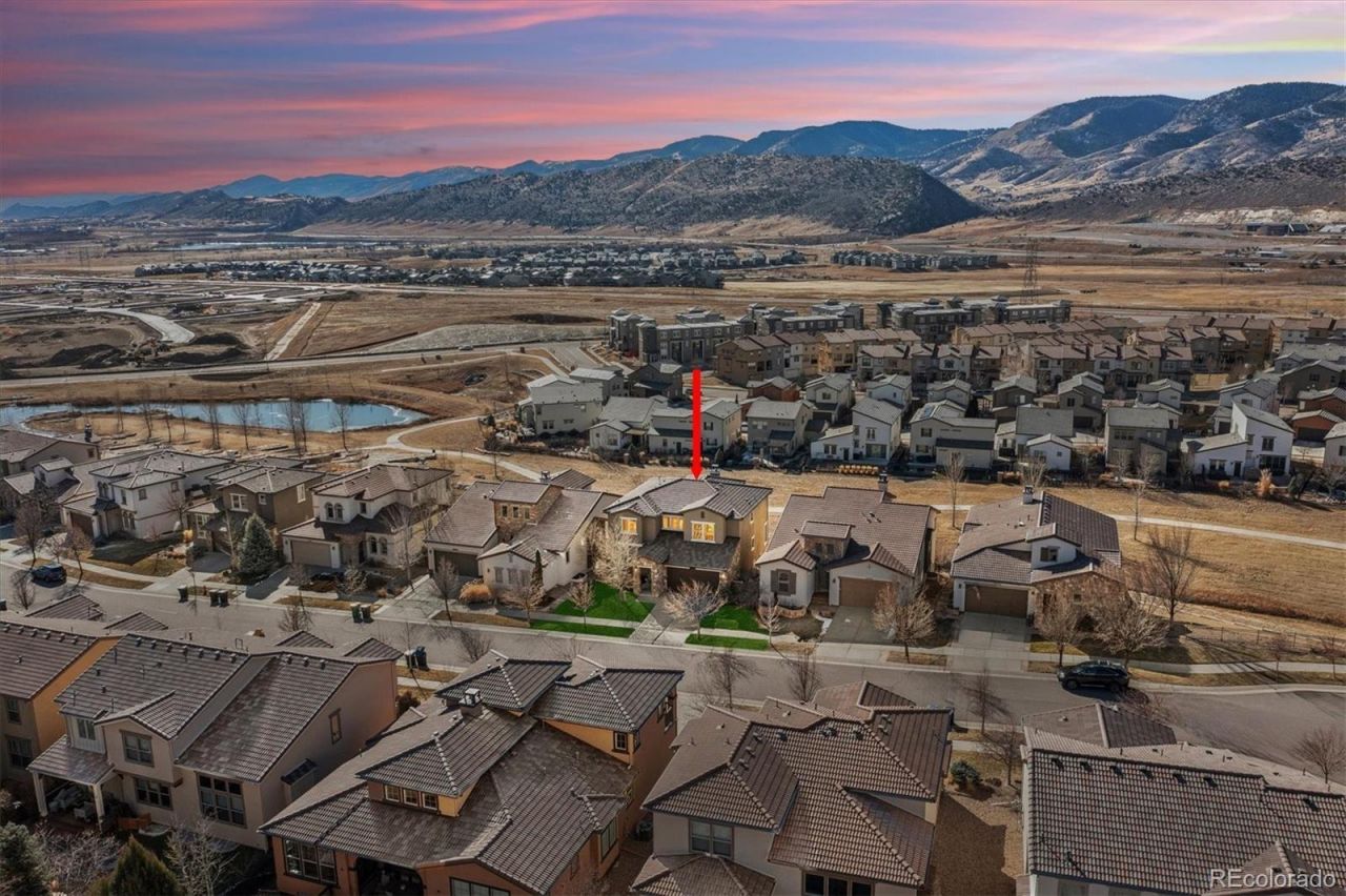 This Solterra residence sits on an elevated premium lot backing to open space with beautiful views of Red Rocks. A dramatic two-story foyer opens into a spacious great room anchored by a striking 17-foot floor-to-ceiling stone fireplace surrounded by windows. The patio door extends the living space onto an elevated, oversized deck overlooking the neighborhood and mountain views?an ideal setting for indoor/outdoor entertaining. The chefs kitchen features stainless steel appliances, granite countertops, upgraded cabinetry, a coffee bar, and a walk-in pantry. Upgraded walnut hardwood flooring flows throughout the main-level living room, kitchen, dining room, and office, creating a warm and cohesive aesthetic. Upstairs, the primary suite captures mountain views and includes a luxurious marble five-piece bath and dual closets. Two additional bedrooms each offer walk-in closets and share a Jack-and-Jill bath. The walkout basement adds exceptional versatility with a fourth bedroom and en-suite bath, a powder room, a spacious bonus area perfect for movie or game nights, a large storage room, and more exceptional views of the mountains and neighborhood. Recent updates include: 2025: exterior paint, 2024: new carpet and interior paint throughout.As a Solterra resident, youll enjoy access to The Retreat clubhouse, complete with an infinity-edge pool, gorgeous patios, and easy access to Green Mountain trails?all just minutes from top-rated schools and local attractions. Meticulously maintained and beautifully designed, this home is defined by its exquisite views, luxurious features, and a prime location.
