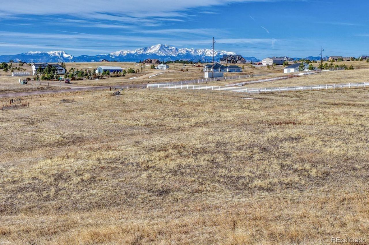 Tremendous sweeping Pikes Peak and mountain views in sought after Black Forest near the coveted Flying Horse North community and golf course! 5 acres with rolling lush green meadows and amazing home sites with walk-out basement potential. Second 5 acre lot bordering this lot is for sale as well perfect for multi-generational living or additional acreage. Domestic well permit in Dawson Aquifer available. No HOA or covenants - zoned for horses, outbuildings and animals. Award winning School District 38. Quick access to Highway 83 or I-25 and an easy commute to Colorado Springs or Denver. Located in a desirable area with beautiful custom homes surrounding and access to the best amenities in northern El Paso County. Natural gas and electric nearby with high speed internet available.