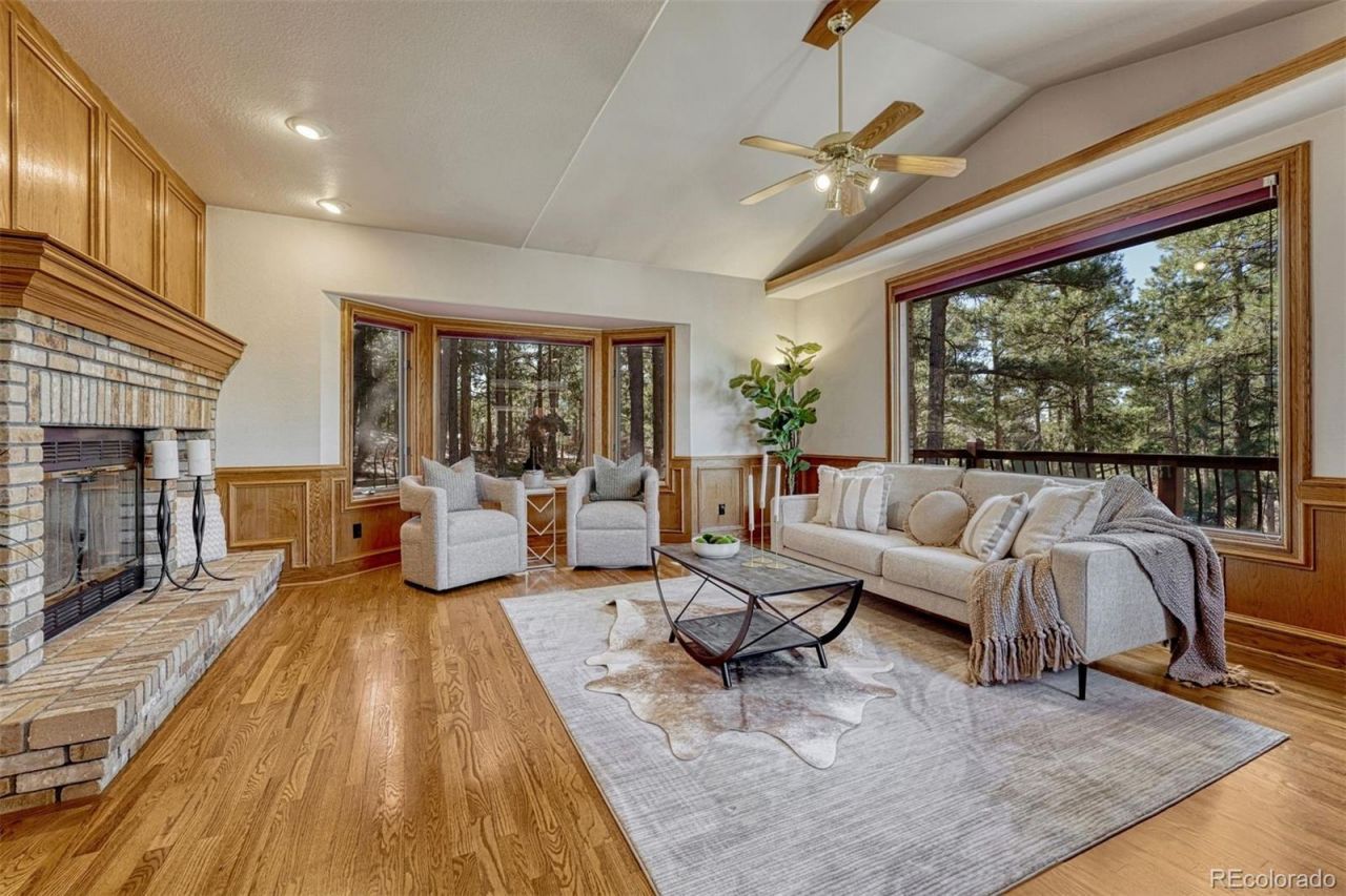 Set on a cul-de-sac with a cascading waterfall and framed mountain views of Pikes Peak, this 5 bedroom, 4 bath home offers a blend of privacy, natural setting, and thoughtful updates. Surrounded by trees and a gently sloping lot, the setting feels tucked away while remaining close to daily amenities. The main level centers around a reimagined kitchen with quartz countertops, new sink and faucet, designed for both gathering and everyday use. Sunlight fills the living room, drawing your eye to the mountain backdrop. A dedicated office provides a quiet workspace, while the formal dining area overlooks the waterfall feature. Casual dining connects seamlessly to the deck with elevated mountain and treed views. The primary suite offers a spacious retreat with a walk-in closet and refreshed bath. Upstairs include three additional bedrooms. * The walk-out lower level adds a recreational space, large bedroom, full bathroom, storage, wine closet, and a separate room ready for a future theater or creative use. Woodmoor is known for large, treed lots and neighborhood trails, with nearby Fox Run Park adding to the outdoor lifestyle. Close to the I-25 corridor for an easy commute. New Class IV roof and HVAC maintenance contribute to a home that has been carefully maintained.