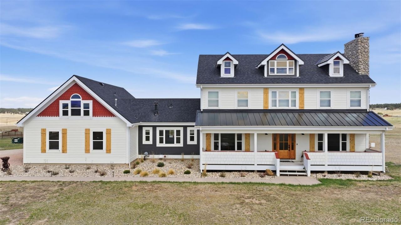 Your dream property awaits! Perched on one of the highest elevation points in Black Forest, this stunning farmhouse on 20 acres is framed by sweeping views of the front range and surrounding hills! Located in District 38, this property features a gorgeous 4100+ sq foot home plus a 30x50 barn for your animals or hobbies! Zoned for horses with no HOA, quick access to Highway 83 and I-25, this spacious and inviting home has been updated both inside and out to include paint, exterior touches and landscaping, brand new carpet, kitchen updates with butcher block island, appliances, and stone countertops. All bathrooms in the home have been updated. Enjoy spreading out- main level features a living area complete with a stone fireplace, breakfast nook, formal dining, and a room that is perfect for a home office. The oversized mudroom has plenty of space for smart storage, and laundry is thoughtfully connected. Spacious walk-in pantry is located in the perfect spot for easy grocery unloading. Upstairs, the primary suite features a fireplace, 5 piece bathroom complete with a clawfoot bathtub and even a private balcony! Two secondary bedrooms and a full bath complete the upstairs space. Downstairs in the basement, a large rec-room and full bathroom provide plenty of opportunity to relax, entertain, or use as additional homeschool or work from home setup. Walkout access to the backyard makes this an ideal space for enjoyment. The home also has a fabulous BONUS loft above the garage that is perfect for guests, or multi-generational living. The loft features a living space, wet bar with beverage fridge, 3/4 bathroom, and bedroom. Enjoy your incredible Pikes Peak views from the front porch, or find shade from the sun off of the back patio. New landscaping in both the front and back make this home enjoyable year-round. Steps from the house is a perfect space for animals or hobbies. The barn can be configured to house stalls, used as a workshop, or anything else you desire!