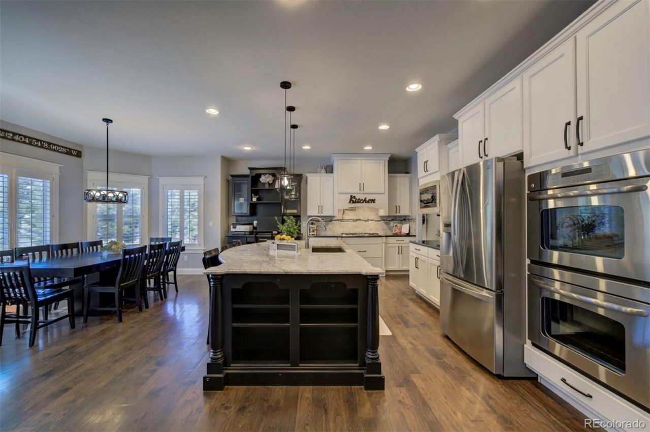 ~Welcome to your private retreat: this spacious 5-bedroom, 5-bath ranch sits on a peaceful 2 1/2-acre treed lot with mountain views. Step inside and youll love the open layout?tons of natural light, big living spaces, and an eat-in kitchen that flows right into everything. Youll love creating meals using the double ovens, gas cook-top, pot filler, large granite island and a walk-in pantry people dream about, complete with its own fridge and ice machine. The main floor primary suite is an oasis of its own, with a 5-piece bath , huge walk-in closet and an exit to your covered deck, to enjoy the morning solace. A second bedroom and a full bath just down the hall, complete this wing of the home. Off the kitchen, there is a mudroom/drop zone with room for everyones belongings and expansive laundry room. The basement has 3 large bedroom, and another great family space for hanging out. Two of the bedrooms share a Jack-n-Jill bathroom and have large walk-in closets. The third has a large walk-in closet as well as a large 15x12 bonus room off it, currently used for storage. Completing this level, there is another full bath and a walk out door to a patio wired for a hot tub, as well as the well equipped utility room. What makes this home extra special, is that off the oversized 3 car garage complete with a utility sink and storage, there is a BONUS ROOM that makes a great private office, or guest suite with its own 3/4 bath! If this wasnt enough for you.... there is a huge partially covered deck with a cozy fireplace for year-round evenings plus a fenced dog run so your pups can roam safely. Plenty of room to garden, entertain, or just enjoy the quiet and is located in a cul-de-sac. This is country living with all the space and comfort youve been dreaming about, yet with all the modern convenience of being right near I25, shopping, restaurants and entertainment~