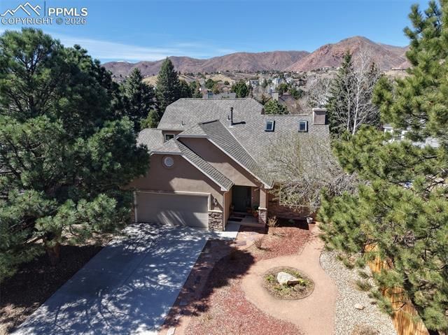 Nestled in the highly desirable Mountain Shadows neighborhood, this beautifully maintained home offers mountain living with no HOA fees and stunning views in one of the most sought-after areas of Colorado Springs. Just minutes from Ute Valley Park, you’ll enjoy easy access to hiking, wildlife, and the natural beauty that defines this incredible community. Lovingly cared for by only one owner, the home features thoughtful upgrades throughout. The welcoming interior showcases striking exposed beams and abundant natural light from three remote-controlled skylights, creating a warm and inviting atmosphere. New wood plank flooring adds modern style and durability. The beautifully remodeled kitchen is both elegant and functional, featuring Samsung appliances, soft-close drawers and cabinets, and a convenient pull-out spice rack. Four custom hand-painted murals add unique character and artistic charm you won’t find anywhere else. The primary bathroom has been fully remodeled, and the main level fireplace has been converted to gas for cozy, efficient comfort. Major system upgrades include improved electrical service with EV plug, electric panel, upgraded AC, HVAC, and water heater, plus a new garage door and opener. Step outside to enjoy the brand-new stone patio and built-in grill, perfect for entertaining or relaxing while taking in the mountain air and views. The xeriscaped front yard provides beauty with low maintenance. Downstairs, the basement offers abundant storage and includes space and plumbing potential to add another bathroom, creating opportunities for expansion or customization. This exceptional home combines comfort, upgrades, and location in one of Colorado Springs’ most beloved neighborhoods—offering sunshine, mountain views, and frequent wildlife sightings right outside your door. This well cared for home is waiting for you!!