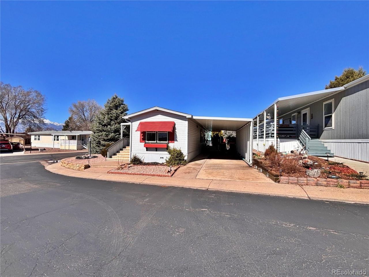 Welcome to 205 N Murray Blvd Lot 138, a desirable corner-lot home in the La Cresta Estates 55+ community featuring a spacious covered front deck, attached two-car carport, and distant mountain views. This well-maintained 1984 single-wide manufactured home offers a 70x14 layout with approximately 980 square feet of comfortable living space.Inside, the home features an open layout with high ceilings, laminate flooring, and central air conditioning for year-round comfort. The kitchen includes the refrigerator, range, microwave, and range hood, and the home also comes equipped with a washer and dryer. Recent improvements include a newer roof and a new hot water heater, offering added peace of mind for the next owner. The living area also features an electric fireplace entertainment piece that may remain with the home.Outside, the covered front deck provides a relaxing place to enjoy the Colorado sunshine and mountain views, while the attached two-car carport offers convenient covered parking. A backyard storage shed provides additional space for tools, equipment, or seasonal storage.La Cresta Estates is a well-maintained land-lease community offering amenities including a clubhouse, indoor pool, fitness area, and resident activities. Conveniently located near shopping, dining, and everyday services, this home offers an affordable opportunity to enjoy comfortable living in Colorado Springs.All buyers must be approved by park management. Current lot rent is $970 per month. Loan options may be available upon request. No seller financing.
