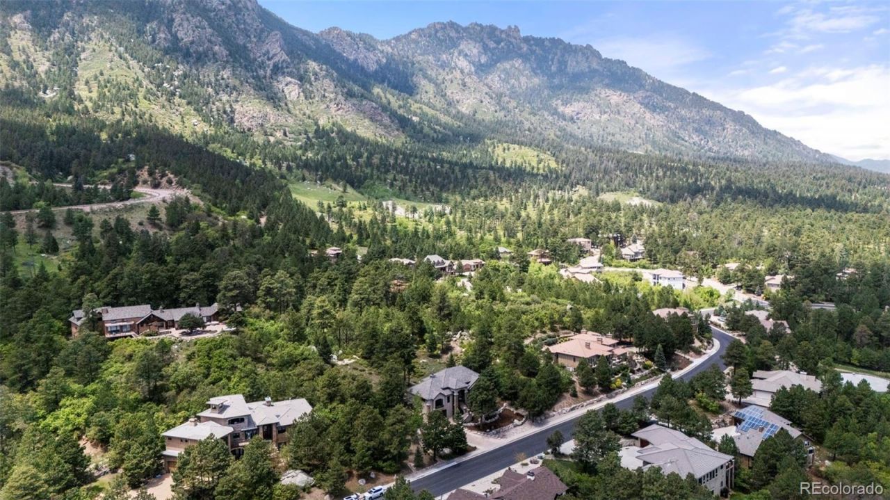 Luxury mountain lodge in prestigious Spires Broadmoor, blending rustic elegance with modern comfort. Featured on HGTVs Mountain Life, this exceptional home sits on over 1 acre of private forest with breathtaking mountain and city views. Built in 2010, this home offers 4 bedrooms, 3.5 bathrooms, and 3,889 square feet of thoughtfully designed living space. The dramatic great room showcases expansive custom windows framing private mountain views, a striking stone fireplace with stone accents, and a soaring 16 wood-beamed ceiling. The oversized chef-inspired kitchen features high-end appliances, gas range, imported granite, wood flooring, abundant cabinetry, a covered balcony, and two separate dining areas?ideal for entertaining. The primary retreat captures stunning city views and includes two spacious walk-in closets and a luxurious 5-piece en-suite bath. Outdoor living is equally impressive with two rear patios, a masonry fire pit and seating area, a man-made creek and pond water feature, private hiking trails, and a covered front porch?creating a peaceful mountain escape. Built with exceptional construction and efficiency in mind, the home includes R50 ceiling insulation and dual 95% high-efficiency furnaces. Additional highlights include smart home connectivity, video security system, home theater with custom Murphy bed, 3-car attached garage with 240v EV charger, fire sprinkler system, tile roof, and stucco exterior. Ideally located near District 12 schools, Cheyenne Mountain State Park, North Cheyenne Cañon, Seven Falls, The Broadmoor, and downtown Colorado Springs, with convenient access to shopping and dining. Experience Colorado mountain luxury at its finest.