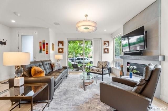 Nestled on one of the most coveted and peaceful blocks in LoHi, this impeccably maintained contemporary residence blends elevated design with unmatched livability. Directly across from a Friar residence and a dual-language elementary school, the home offers a uniquely open west-facing aspect, enhanced privacy, and a tranquil setting rarely found this close to the heart of the city.This four-bedroom, five-bathroom ½ duplex home, built in 2015, is designed for both comfort and style. The open-concept main level features custom lighting, a sleek gas fireplace by Distinctive Mantel Designs, and custom dual surround speakers in the ceiling over the sofa. The chefs kitchen impresses with white quartz countertops, a spacious center island with gas range, a walk-in pantry, and ample cabinetry?perfect for entertaining or quiet evenings at home.Upstairs, the luxurious primary suite includes a spa-inspired bathroom with soaking tub, oversized shower, dual vanities, and a generous walk-in closet. Two additional bedrooms share a flexible full bath setup, allowing the west-facing bedroom to serve ensuite as desired. The laundry room is conveniently located on this floor. The basement includes a large, cozy bedroom with ensuite full bathroom. At the top of the home, a treehouse-like loft offers the ultimate flex space for a home office, lounge, or creative studio. Wrapped in large windows, including a skylight, and surrounded by treetops, this sunlit retreat features a wet bar, wine fridge, and ductless mini-split for personalized climate control. A garage-style door opens to a private deck with stunning city views. The deck includes dual Bowers & Wilkins outdoor speakers.Other highlights include a two-car garage, lightly lived-in interiors (single occupant, no pets), abundant storage, and an unbeatable location. Just beyond the busy restaurant corridors, youre a short walk from LoHis acclaimed restaurants, cafes, and bars?yet removed from the noise and congestion.