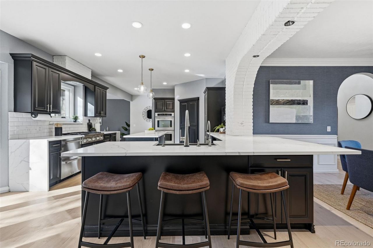 Experience the pinnacle of Ken Caryl living in this stunning brick Tudor, perfectly positioned on an oversized corner lot in the prestigious North Ranch neighborhood. Situated on a quiet, low-traffic street just steps from Bradford Park, pools, and tennis, this ~5,400 sq. ft. residence seamlessly blends classic elegance with modern functionality.Step through the welcoming foyer with its signature curved staircase into a home defined by newer oak hardwoods and a crisp, neutral palette. The layout offers effortless flow between the formal living and dining rooms, a dedicated private office with custom built-ins, and a soaring family room anchored by a floor-to-ceiling brick fireplace.The gourmet kitchen features premium Thermador appliances, a built-in Miele espresso station, a central island with seating, and a walk-in pantry. Whether hosting a dinner party or a casual breakfast in the sun-drenched dining room, this space delivers.Upstairs, the primary suite includes a five-piece bath with soaking tub, shower, and generous storage. Three additional bedrooms offer ample space for desks and storage. A separate bonus room over the garage includes its own private staircase and full bath, making it well-suited for an additional bedroom, a playroom, exercise space, or multi-generational living.Enjoy mountain views from your spacious backyard, complete with a new fire pit for enjoying Colorado evenings or enjoy the sunrise from the covered front porch. The coveted south-facing driveway ensures easy winters, while the 3-car garage and large unfinished basement provide limitless storage.Unrivaled community amenities include 45+ miles of private trails, equestrian facilities, and award-winning schools. From sunset hikes on private trails to morning coffee with mountain views, this North Ranch gem offers more than just a home?it offers the quintessential Ken Caryl lifestyle. Dont miss your chance to own in one of Colorados premier foothill communities.