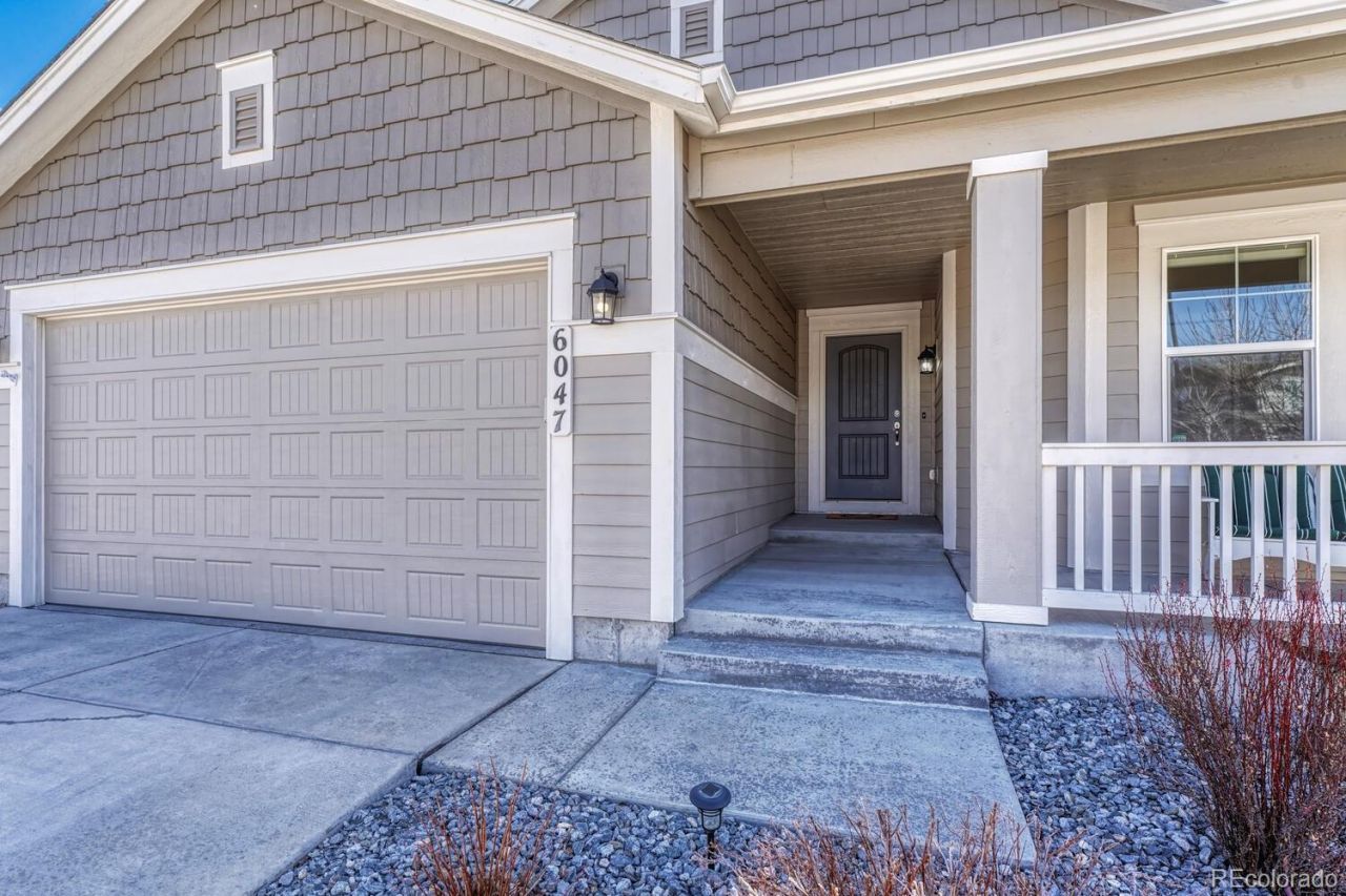 Indigo Ranch main level living home with gardens and Pikes Peak view is near many parks and a great trail system. Beautifully finished 2019-built ranch with finished basement blends comfort, style, and outdoor living. Bright, open great room features vaulted ceiling and durable wood laminate flooring throughout the kitchen, living, and dining areas. Designer kitchen is ideal for everyday living and entertaining, with white quartz counters, stainless steel appliances, decorative tile backsplash, and shaker-style maple cabinets with extended-height uppers and soft-close doors and drawers. Coffee bar, walk-in pantry, gas range, and island with pendant lights make the kitchen as functional as it is beautiful. Living room offers cozy gas fireplace with stone surround and built-in shelving, creating a perfect gathering space. Dining area walks out to back yard for effortless indoor-outdoor living. Primary suite is a comfortable retreat at the end of the day with vaulted ceiling, walk-in closet, and en suite bathroom. Second bedroom, full bath, and laundry room complete the main level. Enjoy central A/C and decorative window coverings throughout. Finished basement has spacious family room, two bedrooms with walk-in closets, full bath, and storage room. Fully landscaped yard has it all, starting with the Pikes Peak view! Partially covered patio includes natural gas hookup with grill included ? an awesome entertaining space. Crab apple tree, lilacs, butterfly bushes, potted raspberries, clematis, daisies, tulips, chokecherries, and garlic are just some of what youll find! Raised garden beds have built-in hail netting! You get drip system, auto sprinklers, 6ft privacy fence, and fully loaded shed with tools included. Drywalled and insulated garage comes with shop vac, workbench, and tools! Located in desirable D49 school district, neighborhood parks and Sand Creek Trail are nearby. The home has been meticulously maintained, so you can move right in worry-free.