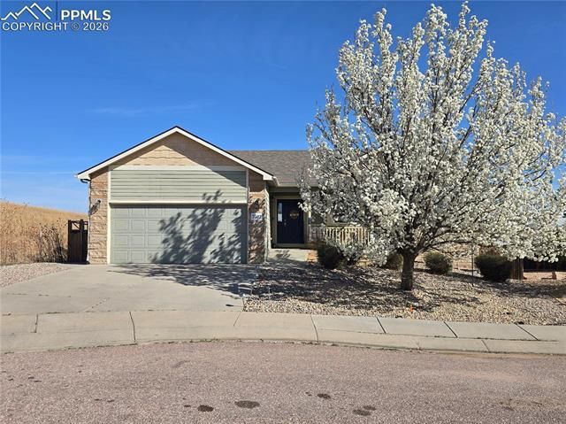 Discover this immaculate, like-new ranch home in Fountain, ideally located just minutes from Fort Carson, Peterson AFB, and Schriever AFB. Enjoy the spacious, open floor plan featuring an island breakfast bar, a walkout basement or upper deck walkout off the dining room and kitchen to an extended deck and a large fully fenced lot—over 1/3 acre—backing to open space for added privacy. The main level has an elegant cook’s kitchen with a breakfast bar, pantry for extra storage, and all new appliances—including refrigerator and gourmet double oven—making meal prep and entertaining a breeze. Step out from the dining area onto the backyard deck, perfect for grilling and gatherings. The home’s thoughtful layout offers easy outdoor access from multiple levels. Relax in the master suite with a remodeled spa shower, four-piece en-suite bath, and an oversized walk-in closet. The enormous backyard features a firepit area, cul-de-sac privacy, and quiet open spaces—ideal for outdoor living. Modern comforts include central AC, ceiling fans, and a water softener. Additional upgrades: all new kitchen fixtures, cabinetry, and granite counters; washer and dryer included; alarm system for peace of mind; an enormous theater room in the basement with movie screen, projector, uplighting, and surround sound. This beautifully maintained Fountain home is ready for you—schedule your private showing and make it yours today!