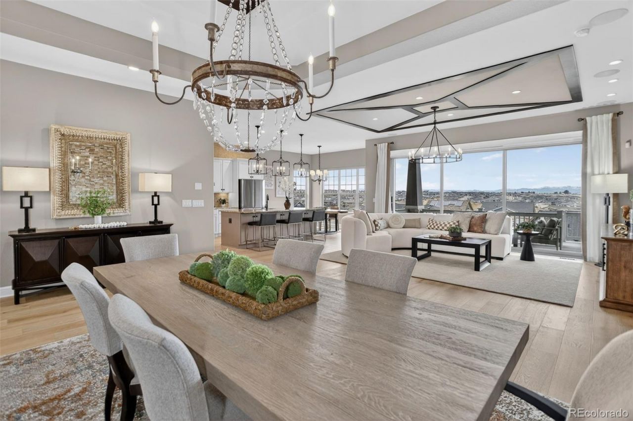 There are homes that simply check the boxes and then there are homes like this, where every detail invites you to live more beautifully. Set on a quiet cul-de-sac in the coveted 55+Hilltop at Inspiration, this former Toll Brothers model home offers a rare blend of sophistication, comfort and breathtaking natural beaut with sweeping 180-degree mountain views that steal the show from sunrise to sunset. From the moment you arrive, the professionally landscaped grounds, elegant exterior lighting & welcoming outdoor spaces create an unforgettable first impression. Inside, 4,367 sf of impeccably finished living space unfolds with soaring 10-foot ceilings, rich wood flooring & stunning floor-to-ceiling stacking glass doors that blur the line between indoors & out, placing Colorados majestic scenery at the center of everyday life. The kitchen is as functional as it is refined, appointed with top of the line appliances, large quartz center island, dedicated pantry and custom lighting - ideal for intimate evenings at home or entertaining on a grander scale. Throughout the home, shutters & motorized shades add a polished touch while fully owned solar panels deliver remarkable efficiency with zero additional electric/gas costs. The basement was designed for memorable gatherings featuring a spacious TV room, a gaming space, a billiards area, a fully equipped wet bar, a bonus craft/hobby room and a private guest suite with adjacent bath. Terrace doors lead you to a covered back patio where year-round enjoyment awaits with built-in patio heaters, a new built in gas grill and a private putting green ? a magical place to relax under painted evening skies. Completing the experience is an epoxy-coated with EV charger and work bench... all just steps from the community clubhouse to enjoy all that Hilltop offers! This is luxury lock-and-leave living at its finest, wrapped in one of Inspirations most extraordinary settings. Recent Updates include new roof, tankless water heater, & AC