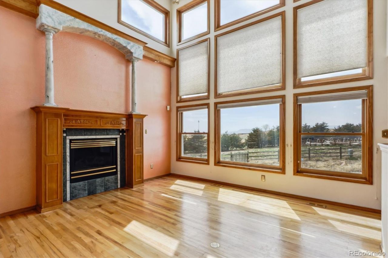 SELLER OFFERING 5K in CONCESSIONS FOR BUY DOWN RATE. Charming listing in Peyton! This home was once named the Parade of Homes Peoples Choice Award. It was the model showcase home when built. Generous rooms with lots of natural light shining in. Main floor includes office space, laundry, and vaulted family room with a wall of windows. Kitchen holds ample cabinet storage and walk in pantry. Formal dining and living space also located on main level. Beautiful hardwood floors throughout. The second floor open hallway features a peaceful bonus space with outside balcony to enjoy your Mountain Views. Spacious Primary bedroom includes a wood stove and en suite full primary bath. Walk in closet is quite large with adequate shelving. Two additional bedrooms with vaulted ceilings and one full bath complete the second floor layout. The basement offers a wet kitchen with Granite tile countertops, wine fridge, and dishwasher. Enjoy movies, sports, or your favorite shows in the Theatre room (TV and Speakers stay). The hutch in basement living room leads to a secret storage room. 4th conforming bedroom located in the basement. Bonus upgrade - roof has hail impact shingles. Over 1/2 acre lot with fenced in back yard for your pets and kids. Three car attached garage and side shed. Falcon Middle School visible and accessible from property backyard. Elementary and High School conveniently located. Dont miss your opportunity to own this great property surrounded by Colorado views.